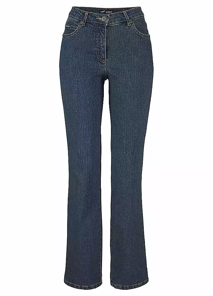 Comfortable jeans, great to wear thanks to the stretch fabric. The high waistband means a super fit. Casual cut with comfortable thigh and straight leg. 5-pocket style.