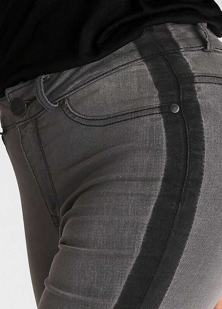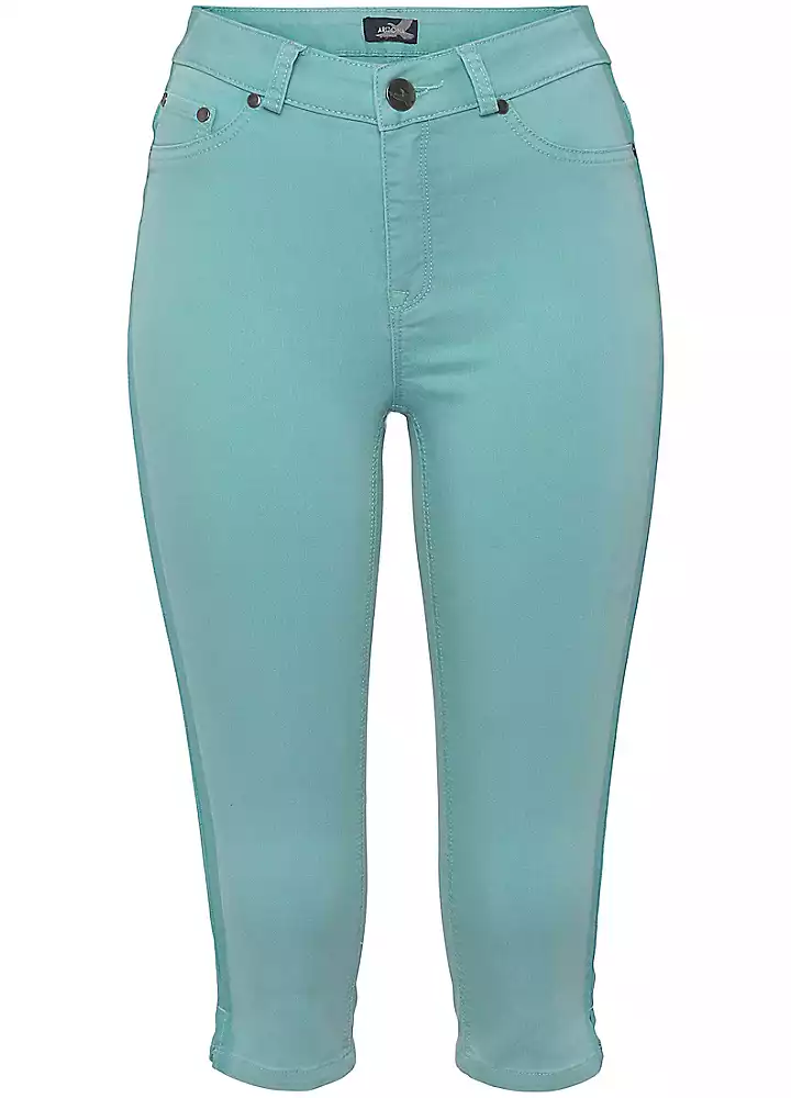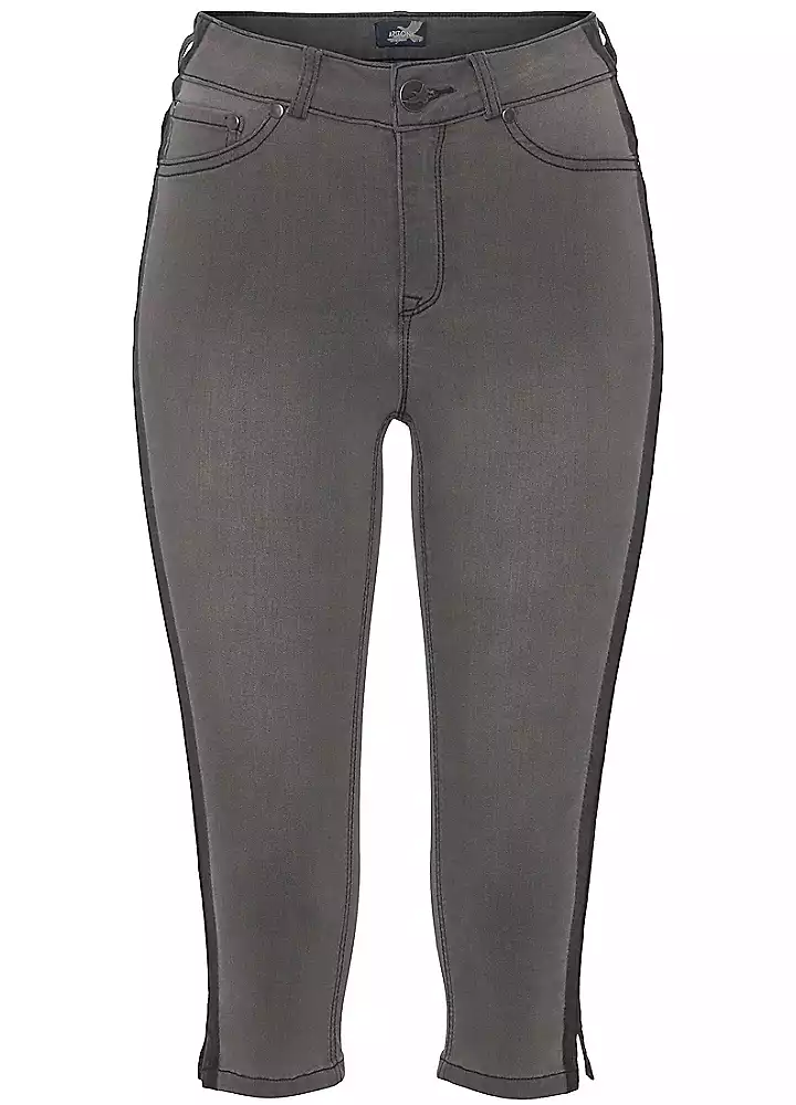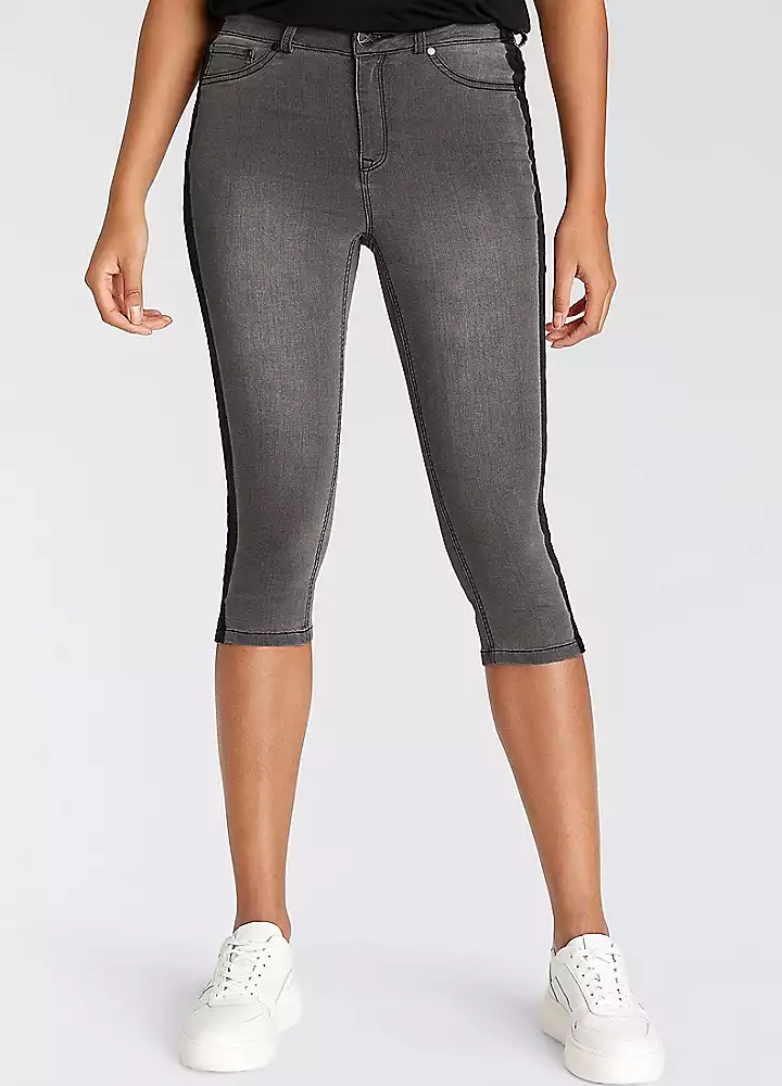 Versatile capri jeans with a fashionable stripe design on the side of the leg. Figure-hugging leg shape and high rise. The robust and stable denim quality makes the pants durable and long-lasting.