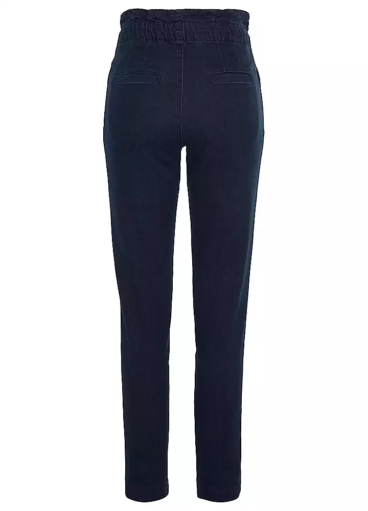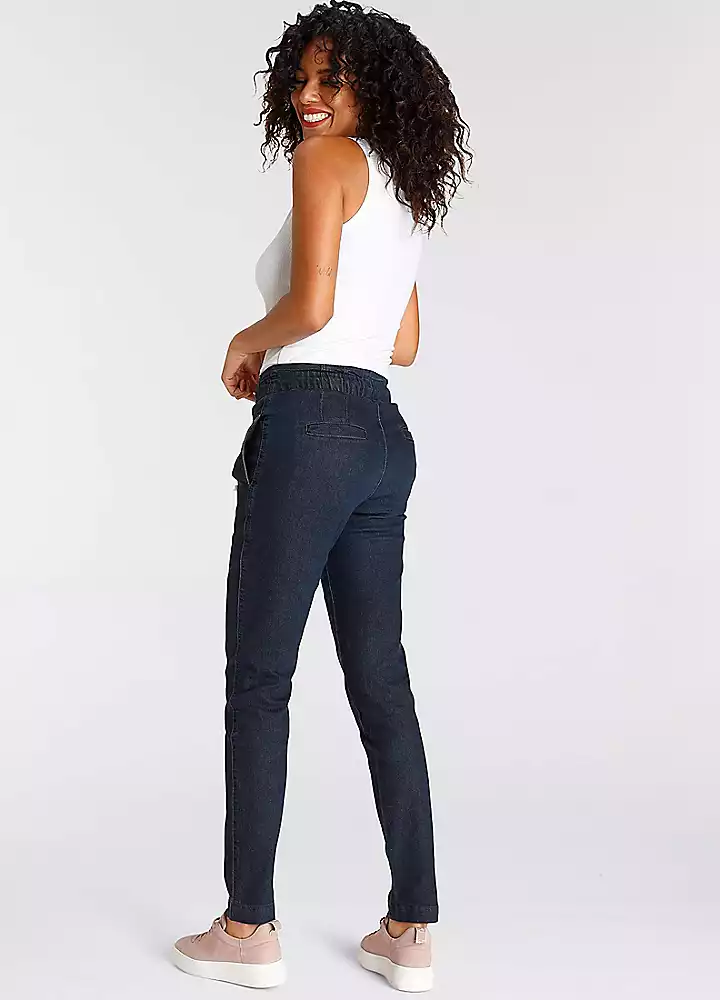 Casual jeans in a jogger style. Featuring a high waist with drawstring fastening and in a straight leg cut. Made from a soft cotton material mix with stretch content for the perfect fit.