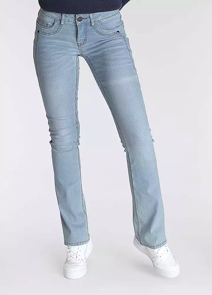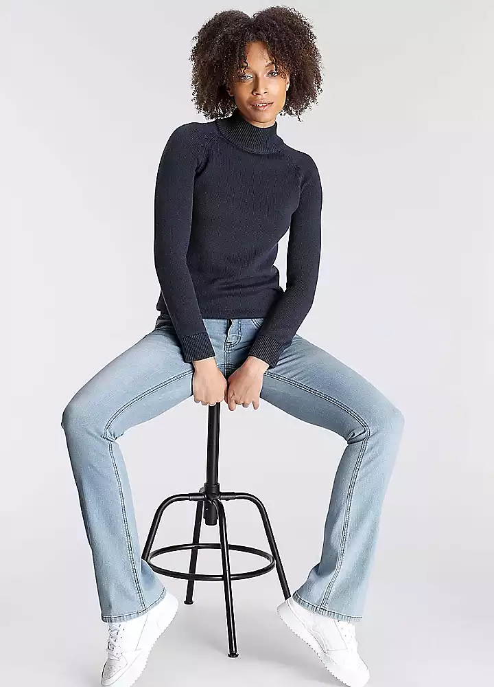 A great all-rounder, these bootcut jeans are designed with stylish wedge inserts and a low waist. The flared leg shape of the jeans is cut wider on the legs. The cotton stretch material of the denim adapts well and is very comfortable.