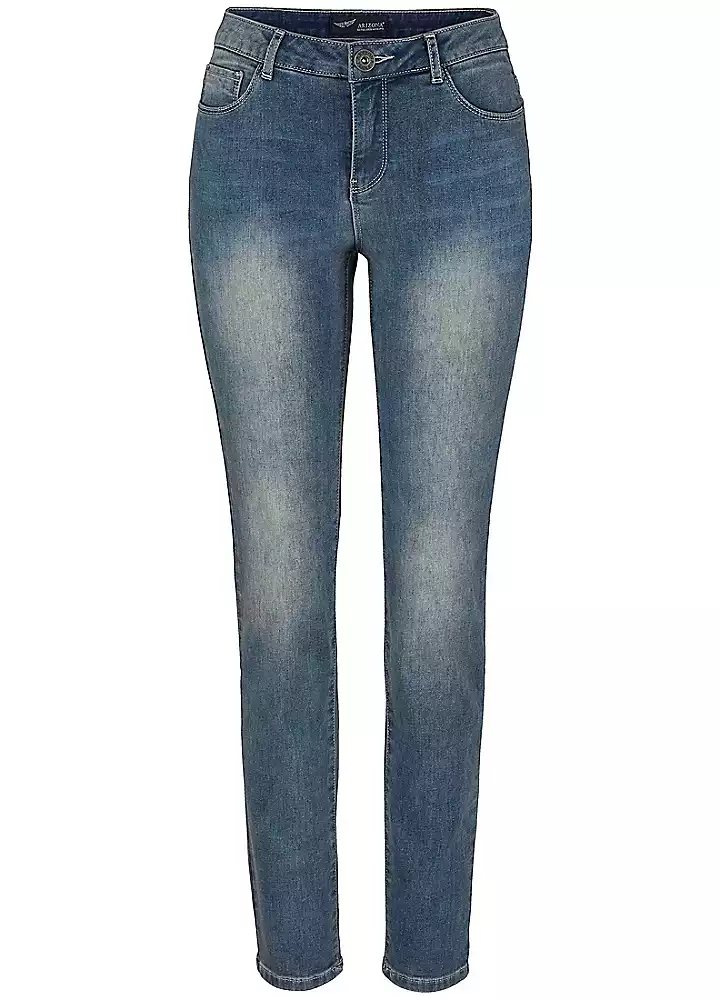 5-pocket style jeans in a slim fit and high-waist style with a narrow waistband and belt loops, complete with a zip and button fastening. The thermo stretch denim fabric makes them great for the winter months and will keep your legs warm.
