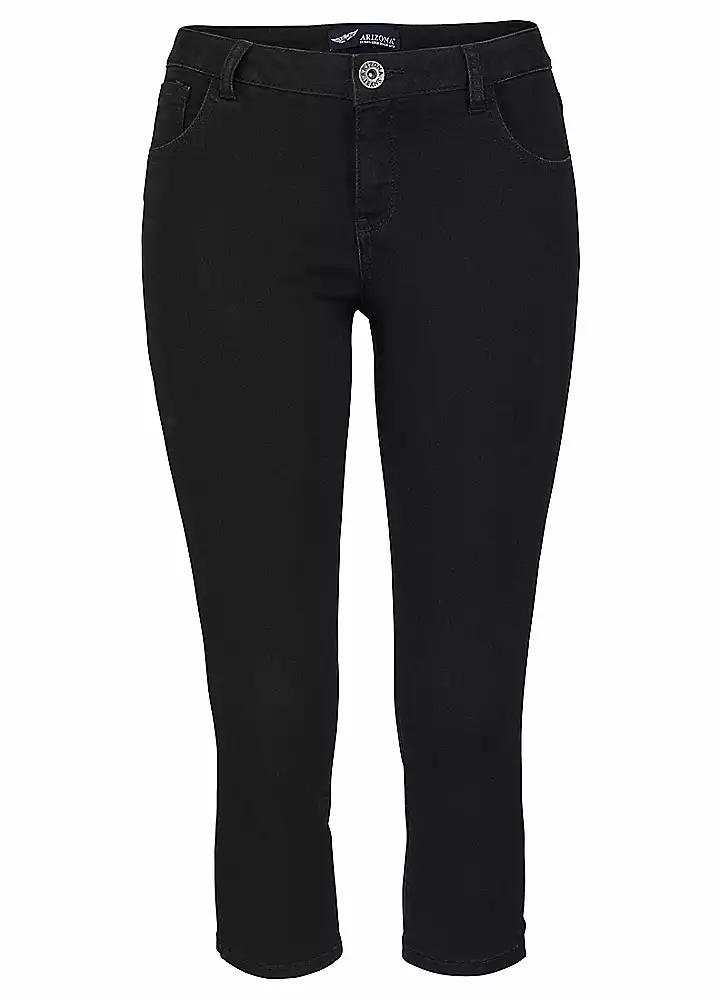 Super-stretch cropped denim jeans which feel like a second skin! They come in a three-quarter length with a regular height, 5 pockets, plus zip fastening with top metal button .
