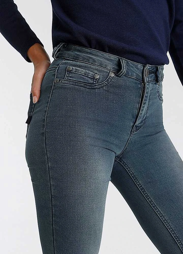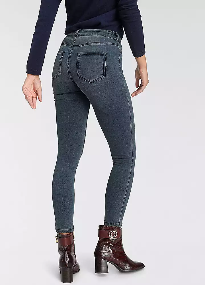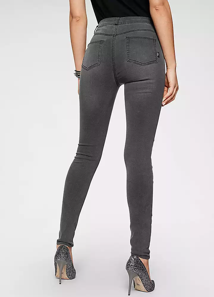 Comfortable five-pocket style skinny jeans with extra elastic for a tight fit.