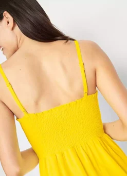 Get into the holiday mood with this cute sundress! In a relaxed cotton fabric with a bandeau neckline and slim cami straps.