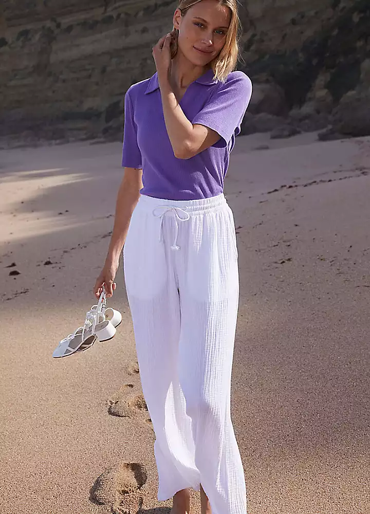 Bonprix Wide Leg Cotton Palazzo Trousers
