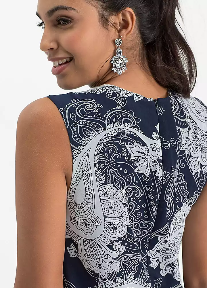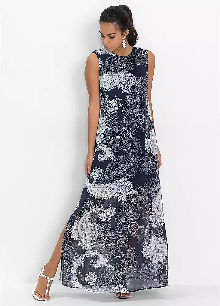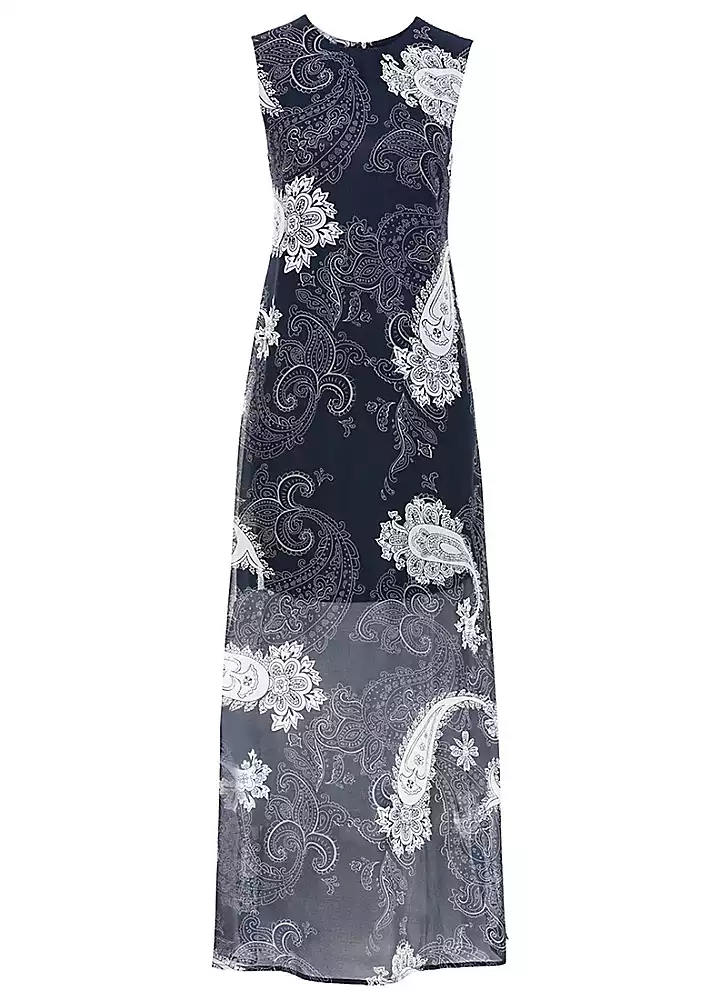 This sleeveless maxi dress has a paisley print on its sheer chiffon shell and hidden zip fastening at the back.