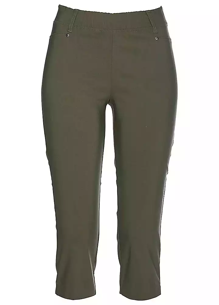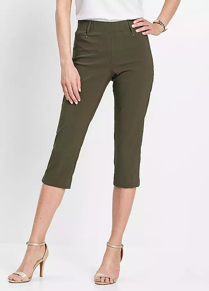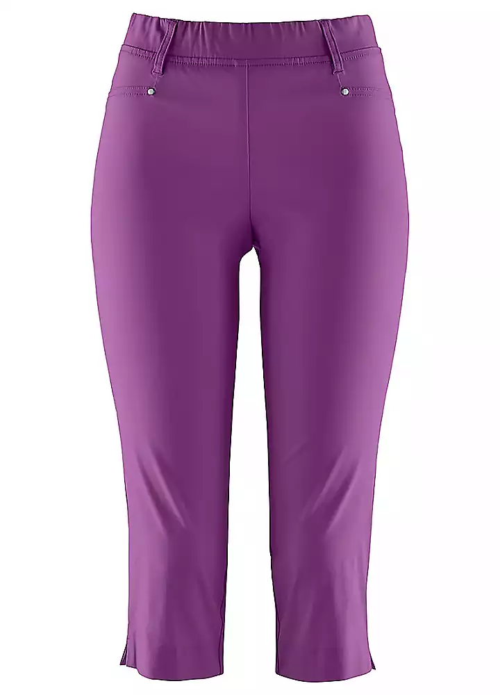 All the style of 5 pockets jeans, with a the comfort of stretch fabric. These flattering capris are ideal for summer holidays, thanks to the comfortable elasticated waist and hem vents.