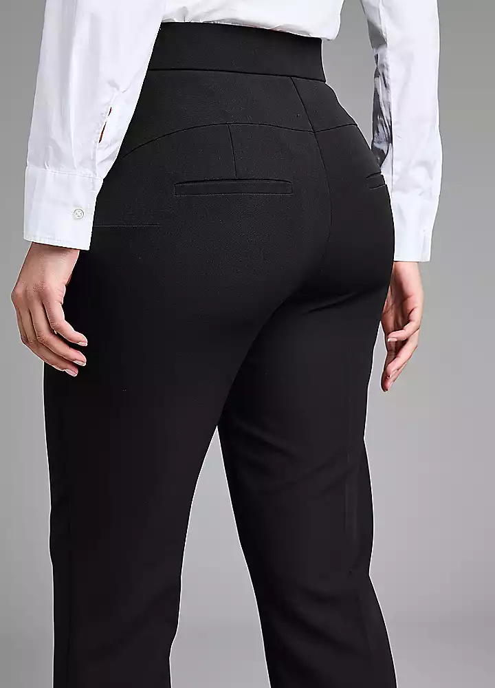 Our premium shaping trousers are innovatively designed to flatter your figure and enhance your shape, with hidden stretch tummy panel to smooth your silhouette and deep stretch waistband for added comfort. Made in a premium 4 way stretch fabric, designed with clever seaming detail to shape and lift your bottom. These will become the only trousers you need in your wardrobe.