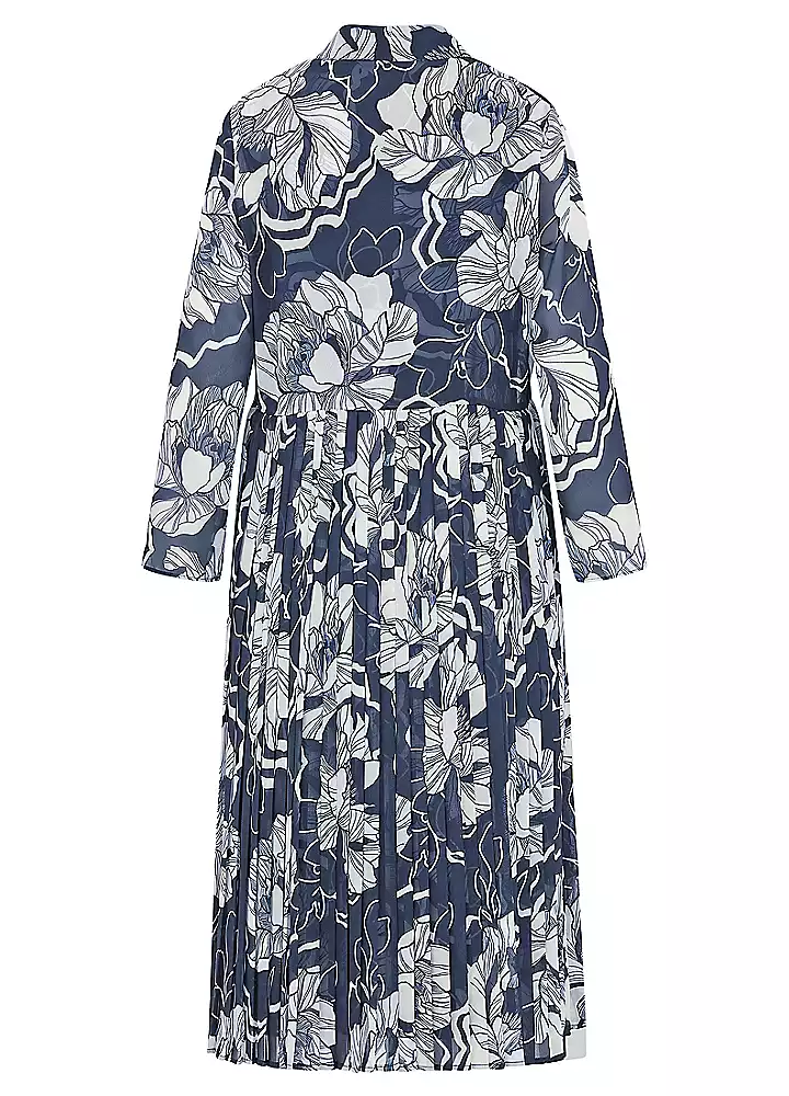 The matching print chiffon jacket has three-quarter length sleeves and gorgeous pleat detail to the back.