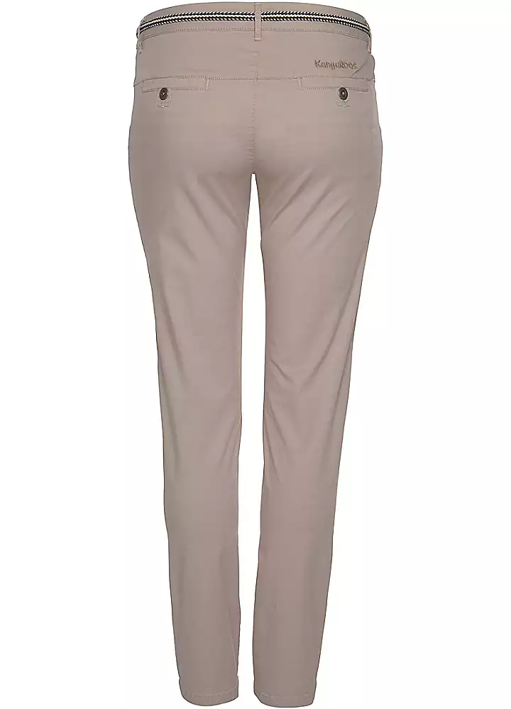 Straight leg chinos that feature side pockets, buttoned piped back pockets and supplied with a two-tone belt. These chinos are ideal for a chic casual look.