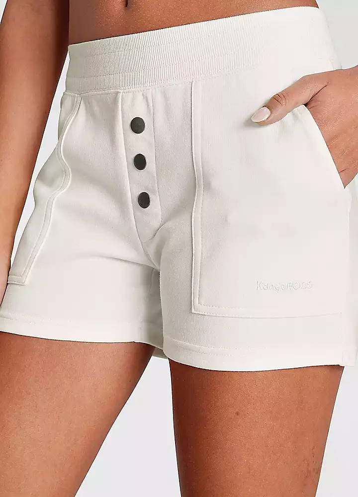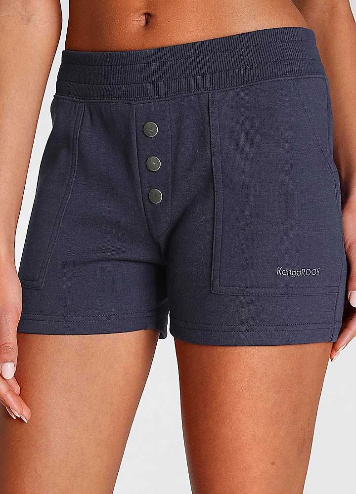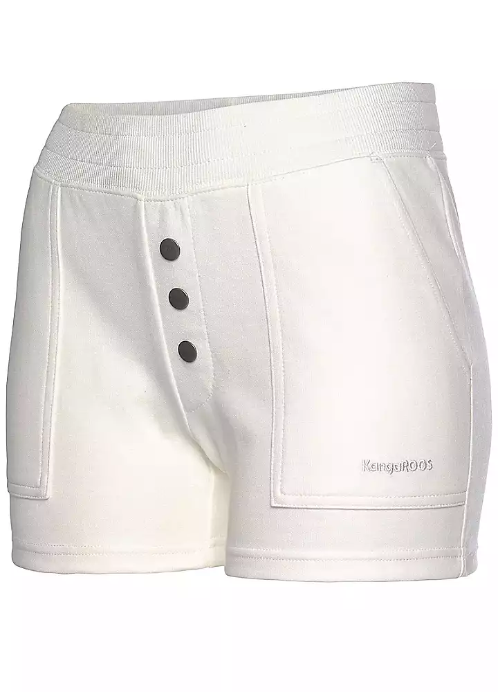 Beautiful lounge shorts with a wide waistband and loose fit for great comfort. Finished with decorative buttons on the front and practical large pockets, these are perfect for leisure and sports.