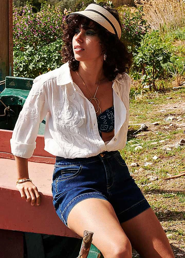 Summer just isn’t the same without a pair of denim shorts on hand. This pair is designed with a high-waisted silhouette and a secure double-button fastening to finish. Style them with a simple cami, or opt for a more smart-cas’ look with a light and airy blouse.