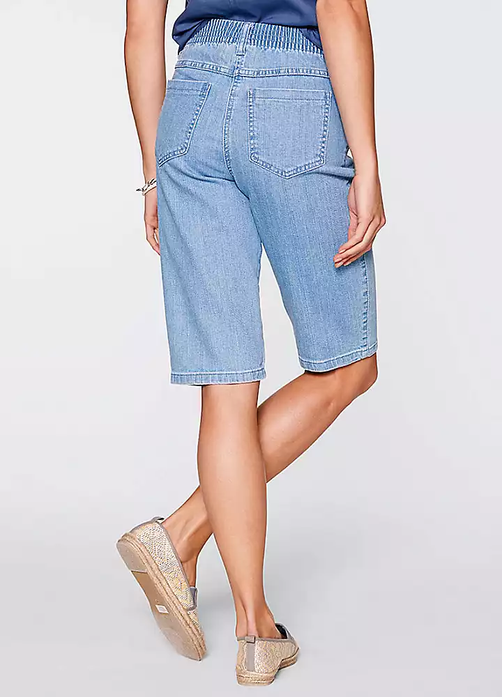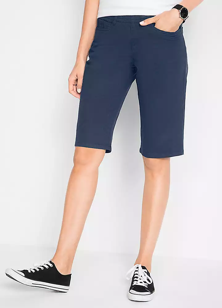 Pick up two pairs of stretch cotton bermudas for one great price! One pair is twill and one is denim, and both have a classic 5 pocket cut.