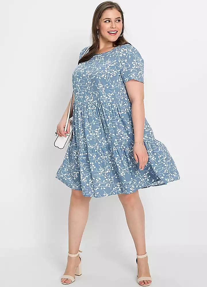 Falling elegantly to the knee, this short sleeve dress is designed with a fitted bodice and a skater skirt.