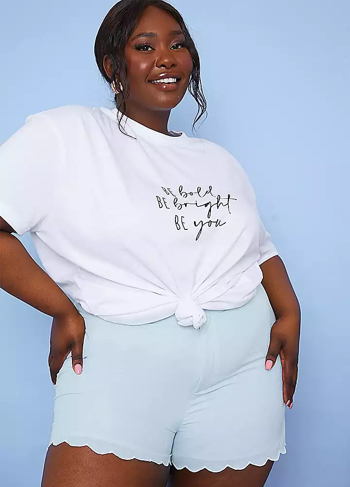 A must for your summer wardrobe, these woven linen look shorts feature a pretty scalloped edge and will look great with your favourite t-shirt.